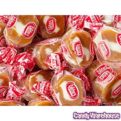 Box contains 6 pounds of Sugar Free Milk Chocolate Cashew Caramel Patties Candy.