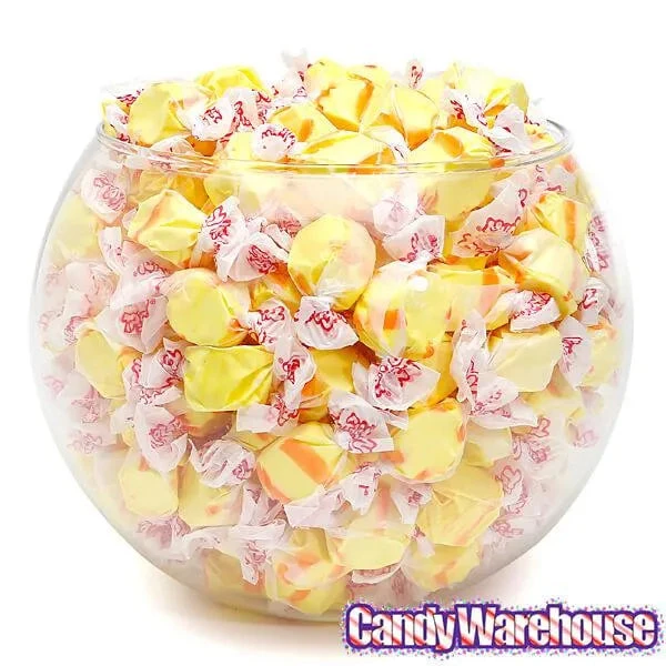 Bag contains 2.5 pounds of Gourmet Banana Salt Water Taffy Candy.